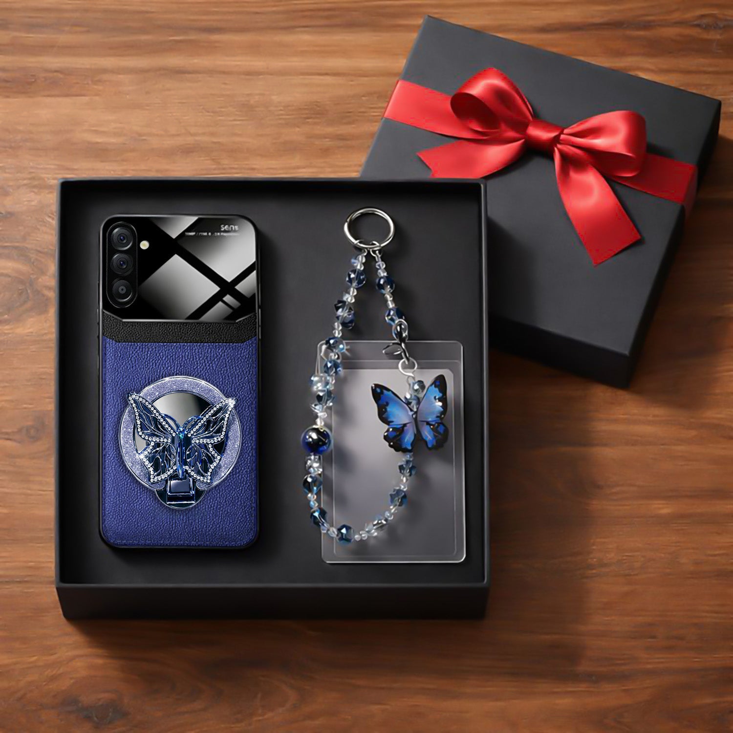 Samsung Galaxy A16 5G Premium Leather Lens Butterfly Stand Case with Charm Strap