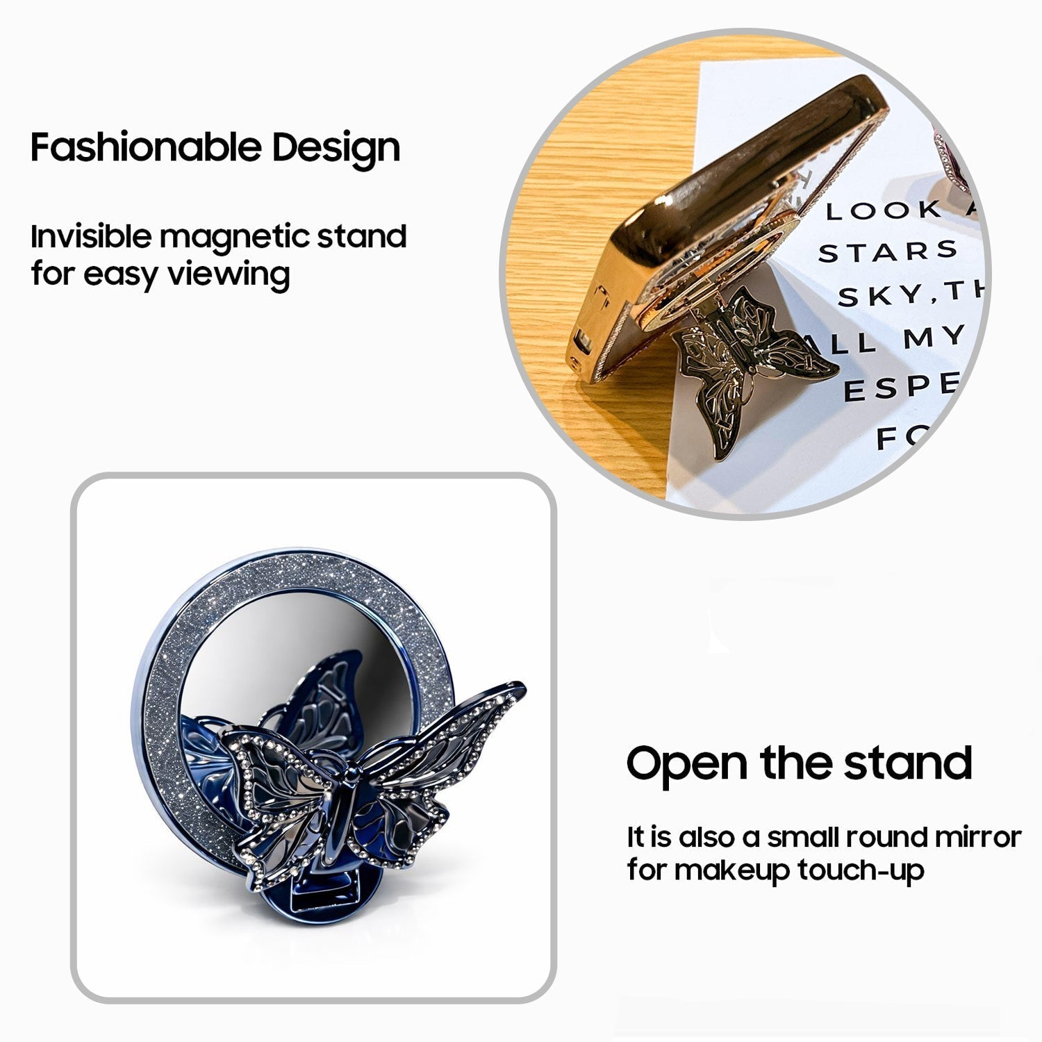 - Foldable Ring Stand: Works as a secure grip and a stand for hands-free viewing